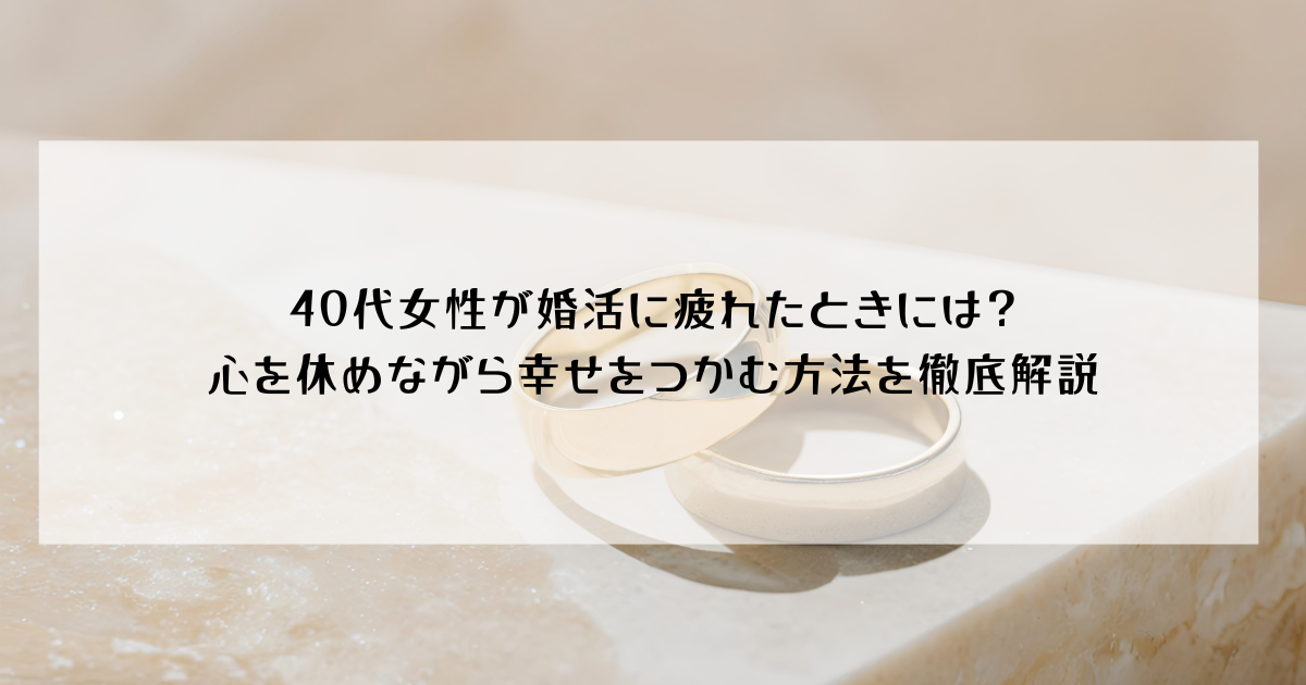 本記事では、婚活疲れを感じている40代女性に向けて、疲れの原因を紐解きながら、心身を癒し、再び前向きに歩み出すための具体的な方法をお伝えします。
